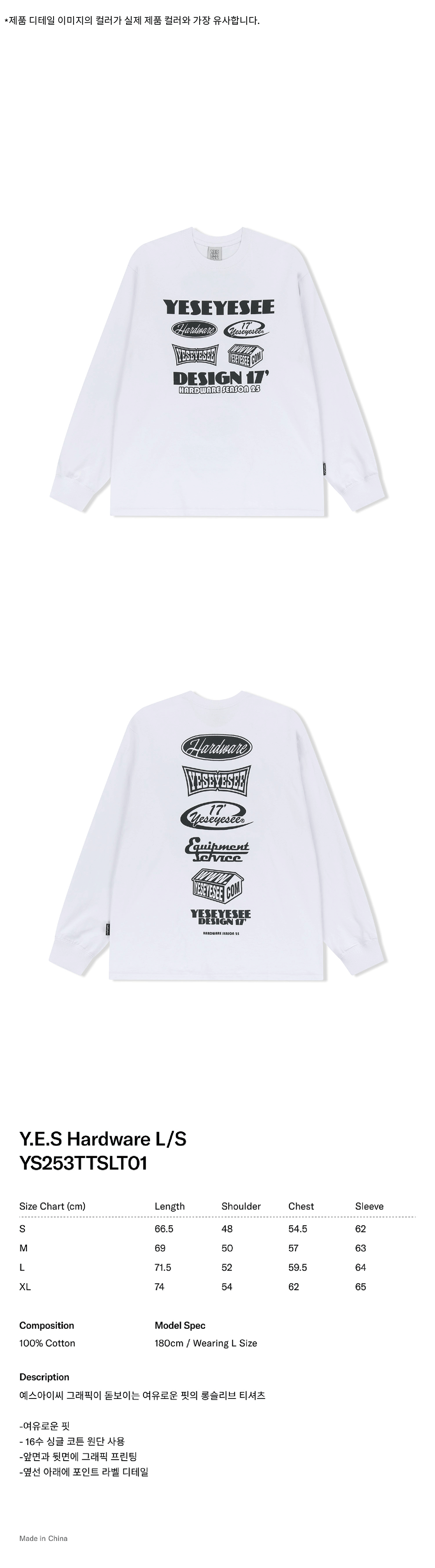 예스아이씨 예스 하드웨어 롱슬리브 화이트