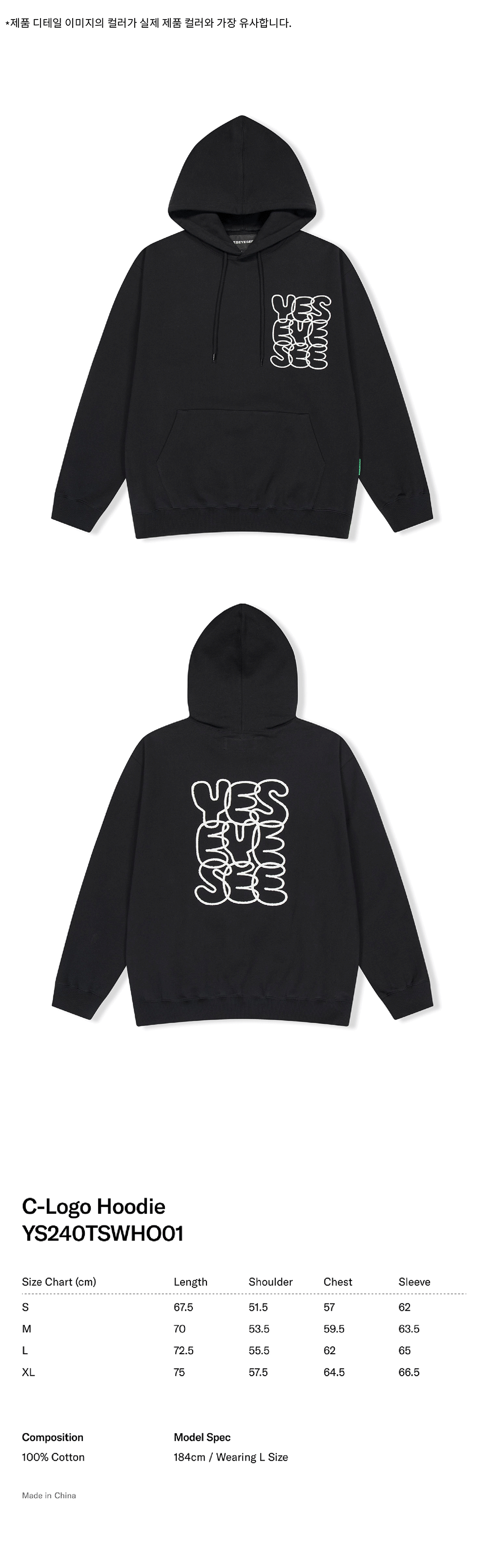 예스아이씨 씨로고 후디 블랙