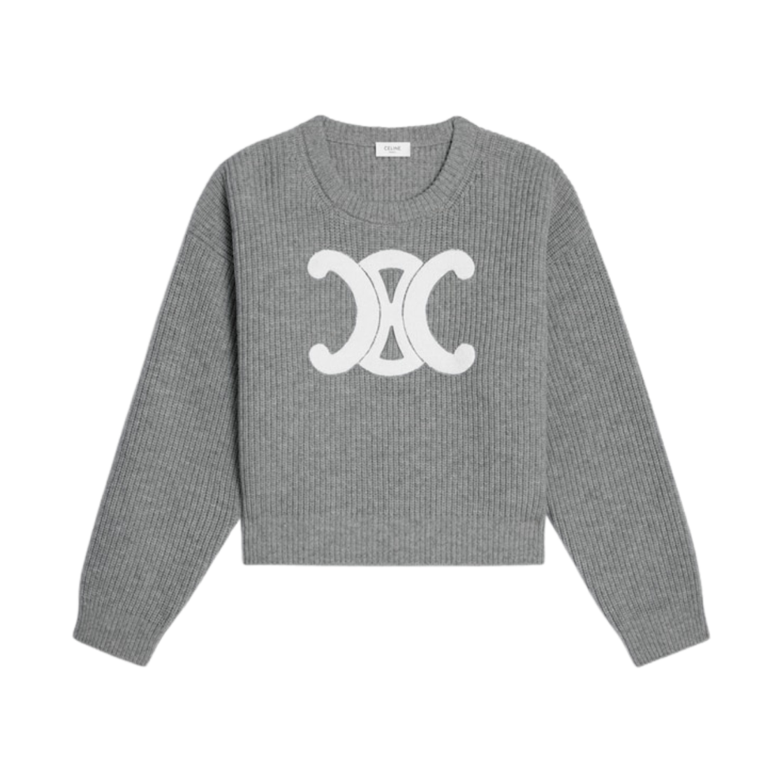 (W) 셀린느 크루넥 스웨터 리브드 울 미디엄 그레이