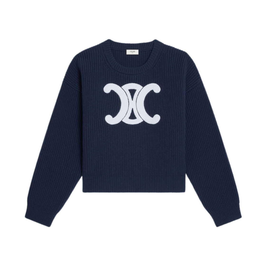 (W) 셀린느 크루넥 스웨터 리브드 울 네이비