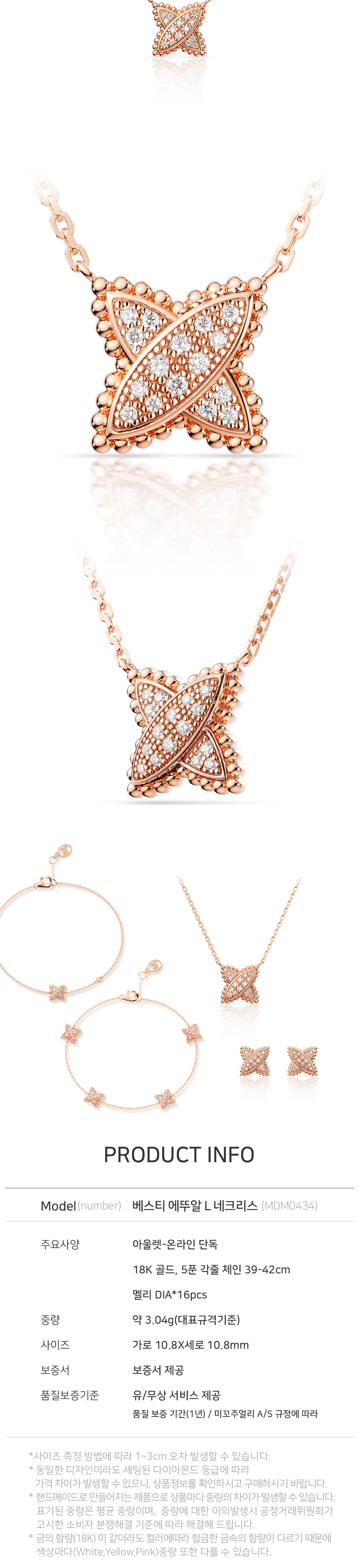 미꼬 온라인 단독 베스티 에뚜알 L 다이아몬드 네크리스 핑크 골드