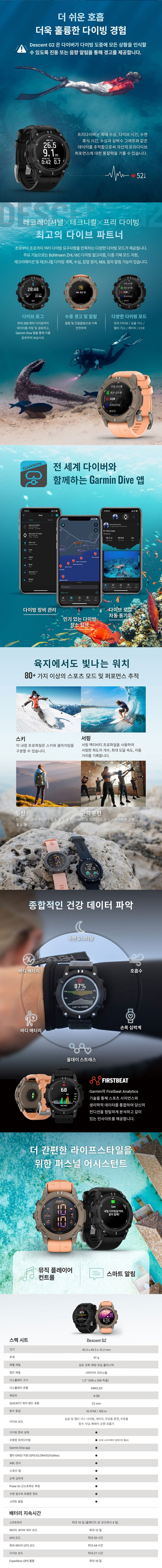 [10% 적립] 가민 디센트 G2 다이빙컴퓨터 다이버시계 팔로마 쉘핑크