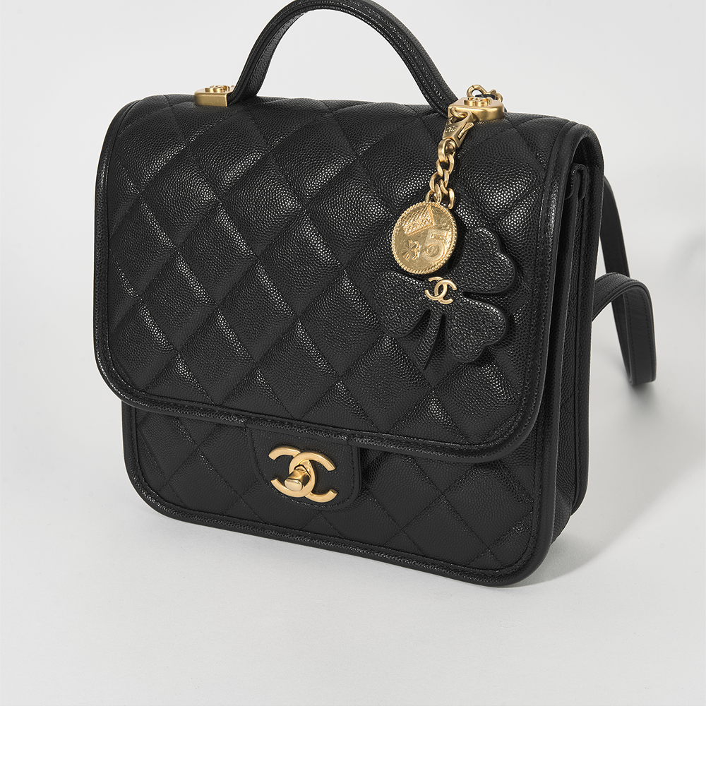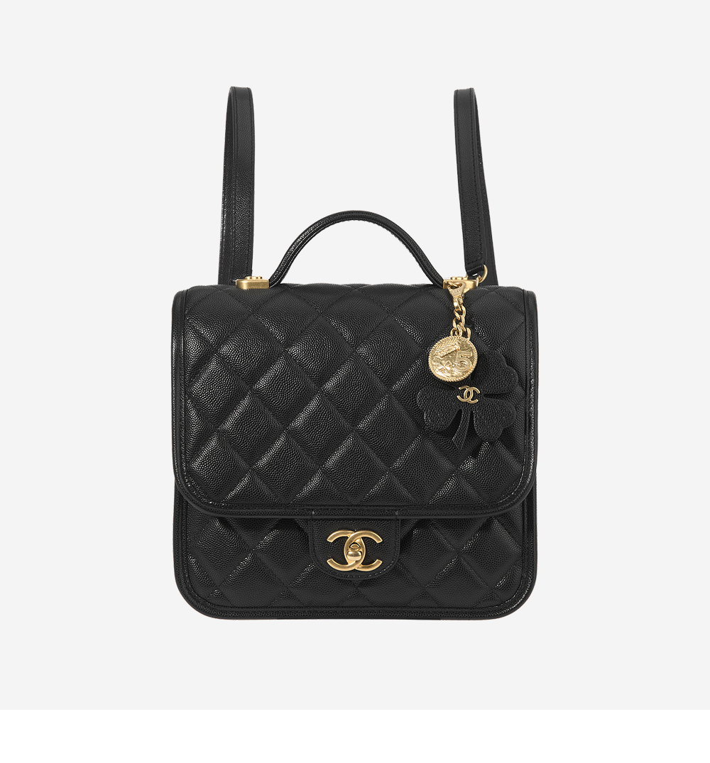 샤넬 스몰 백팩 그레인드 카프스킨 & 골드 메탈 블랙