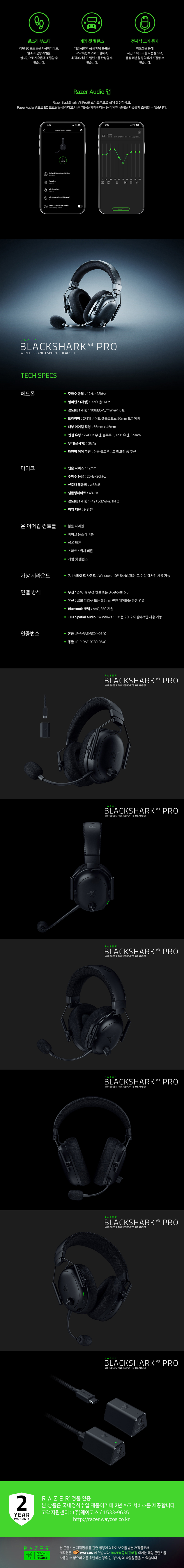 레이저 블랙샤크 V3 프로 블랙