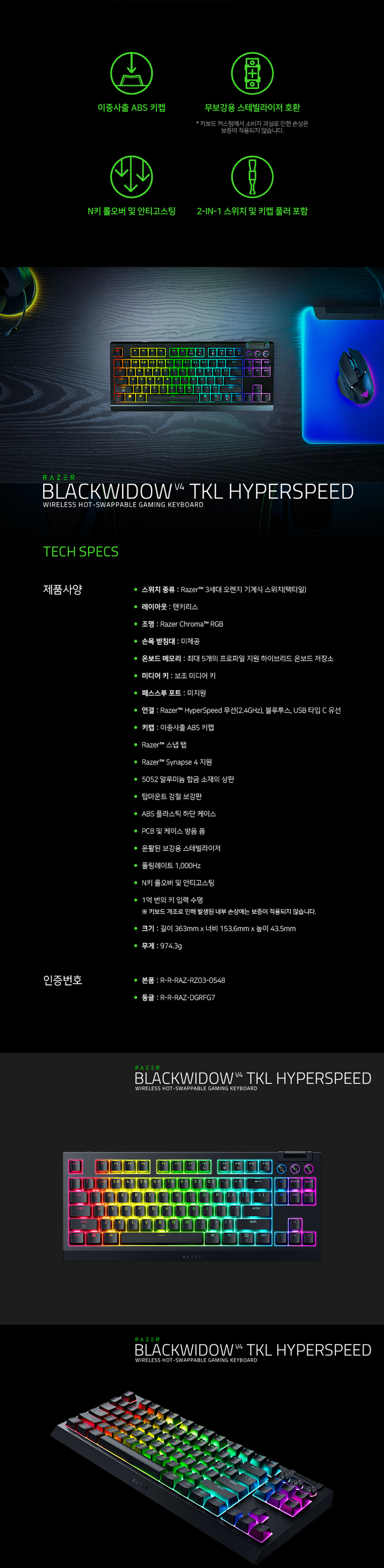 Razer Blackwidow V4 TKL Hyper Speed KR