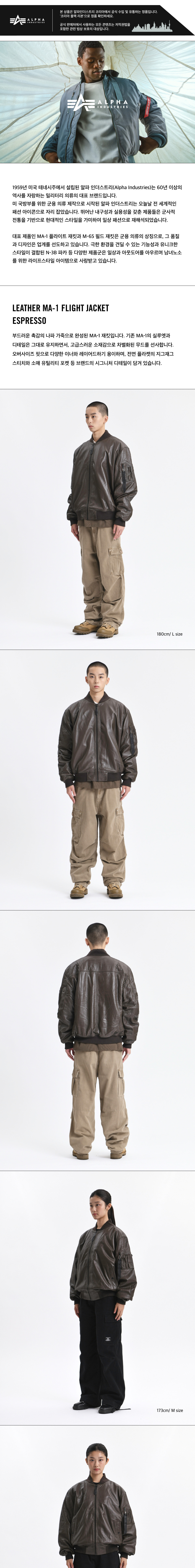 알파 인더스트리 레더 MA-1 플라이트 자켓 에스프레소