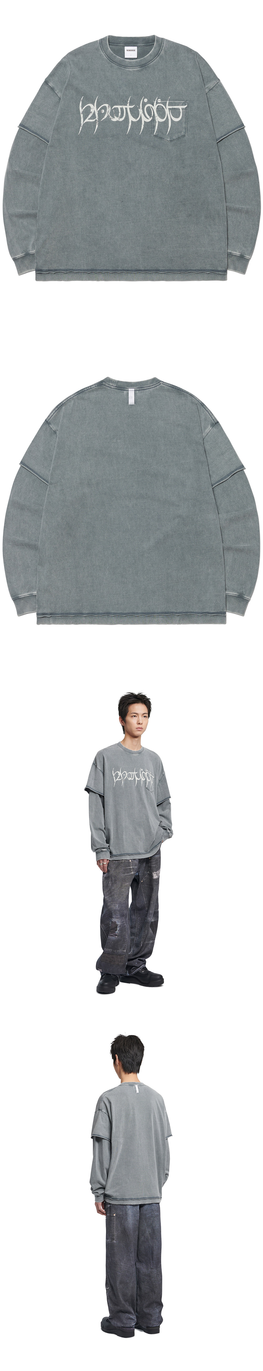 노매뉴얼 A.R 롱 슬리브 티 워시드 네이비