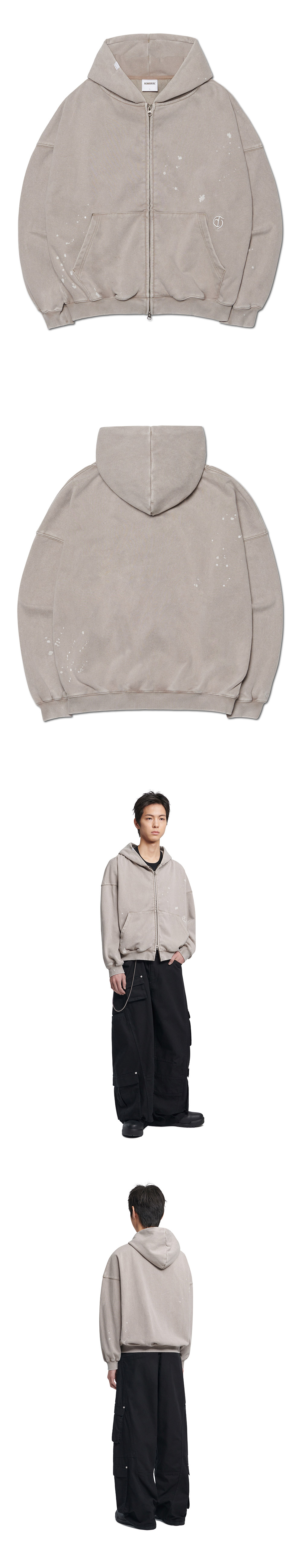 [KREAM 단독] 노매뉴얼 페인티드 후디드 집업 워시드 웜 그레이