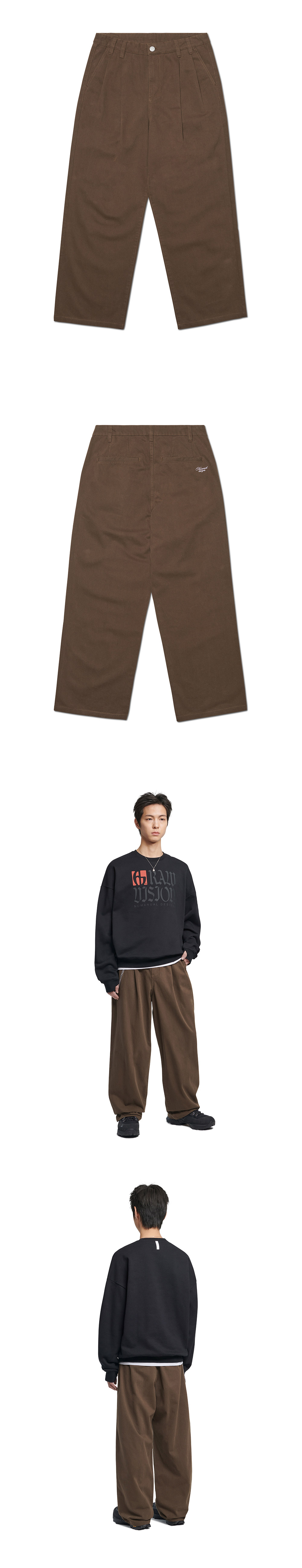 노매뉴얼 루즈 핏 투-턱 팬츠 브라운