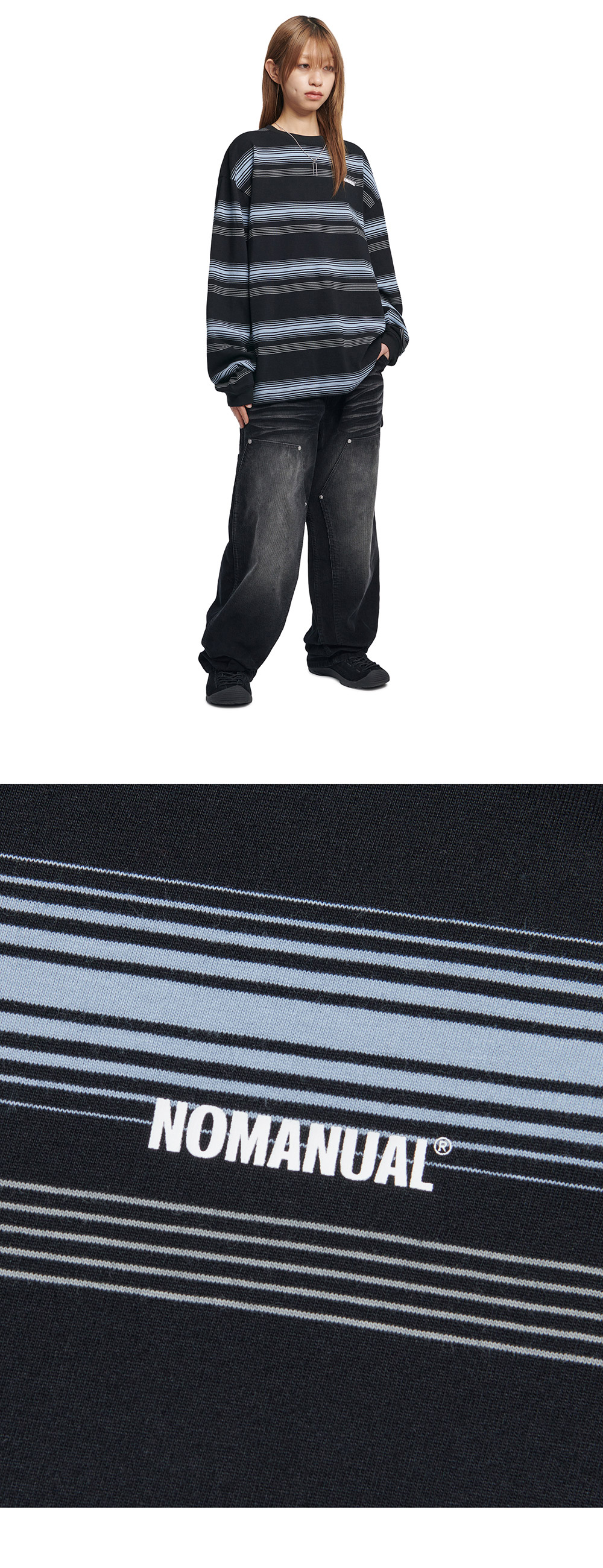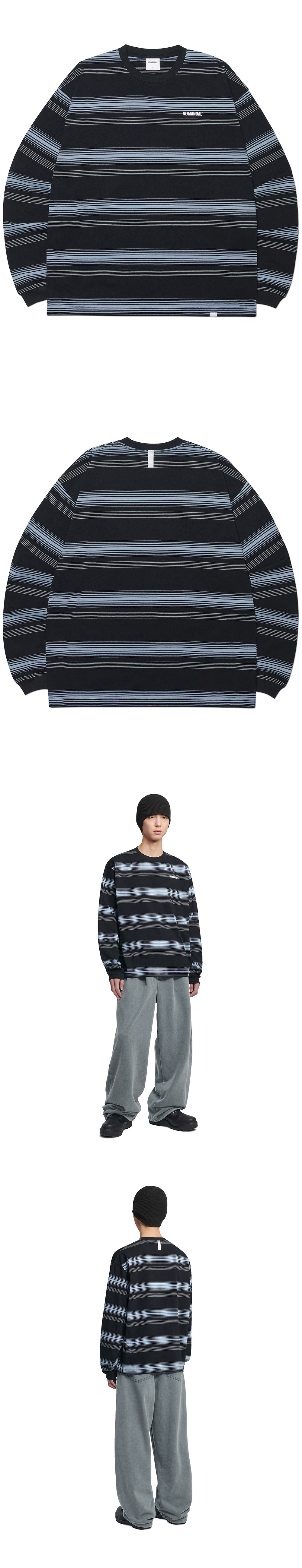 노매뉴얼 NM 스트라이프 롱 슬리브 티 블랙