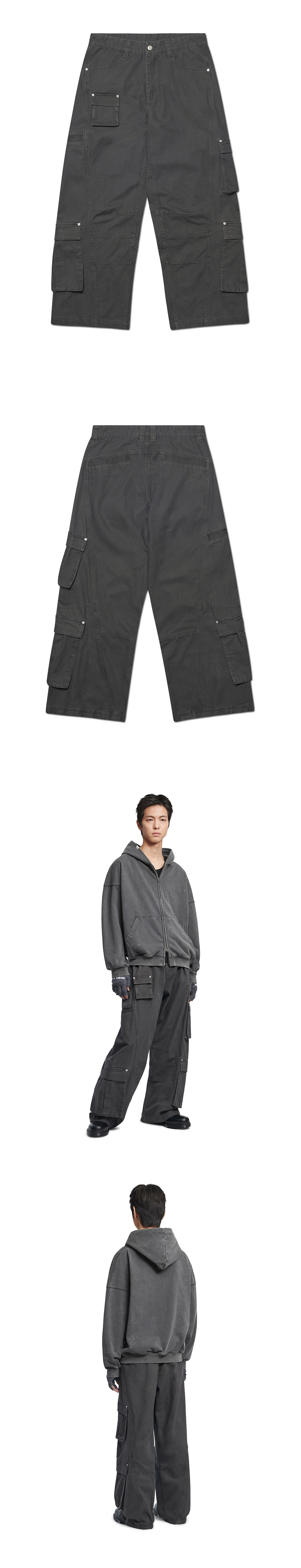 노매뉴얼 9P 카고 팬츠 워시드 차콜