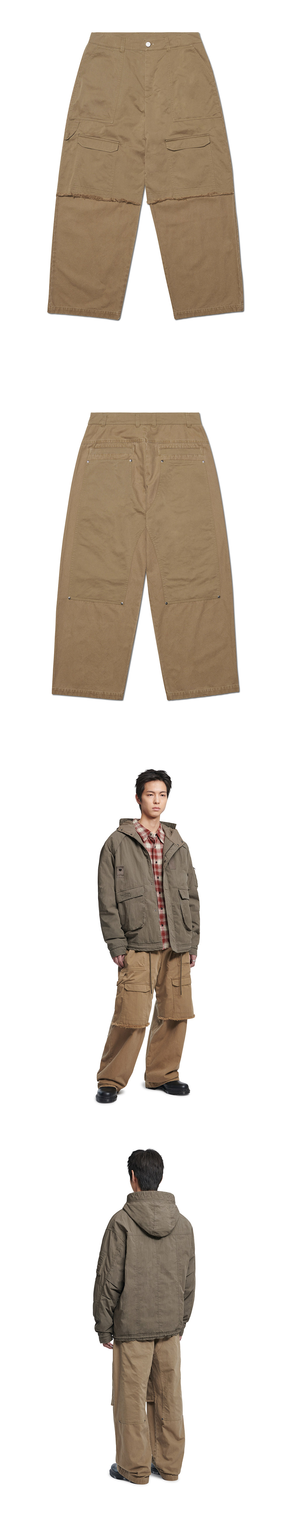 노매뉴얼 더블 레이어드 카고 팬츠 워시드 베이지