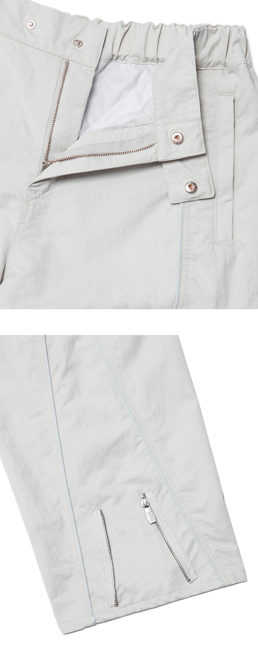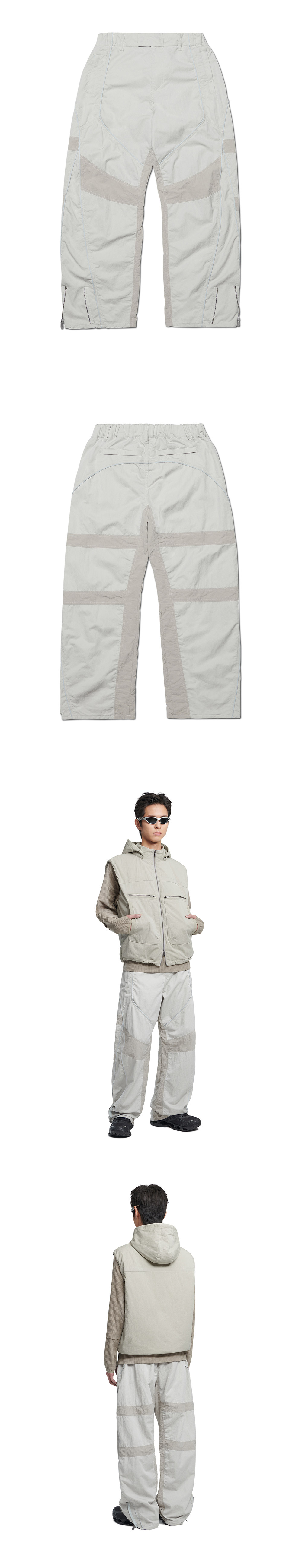 MODEL MAN : 180CM (L SIZE) OUTSHELL 1 : COTTON 46% NYLON 54% OUTSHELL 2 : NYLON 100% ZIPPER (YKK社) WAIST BANDING * 두꺼운 폴리백 특성상 옷에 슬립제가 묻어나올 수 있습니다. 어두운 색 계열의 상품 구매시 보이는 슬립제는 불량의 사유가 아님을 알려드립니다.