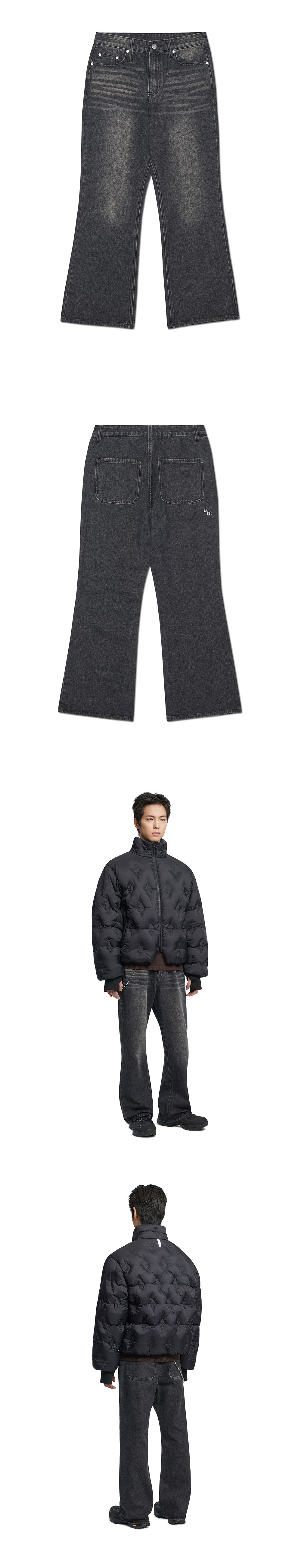 노매뉴얼 소프트 플레어 데님 팬츠 워시드 블랙