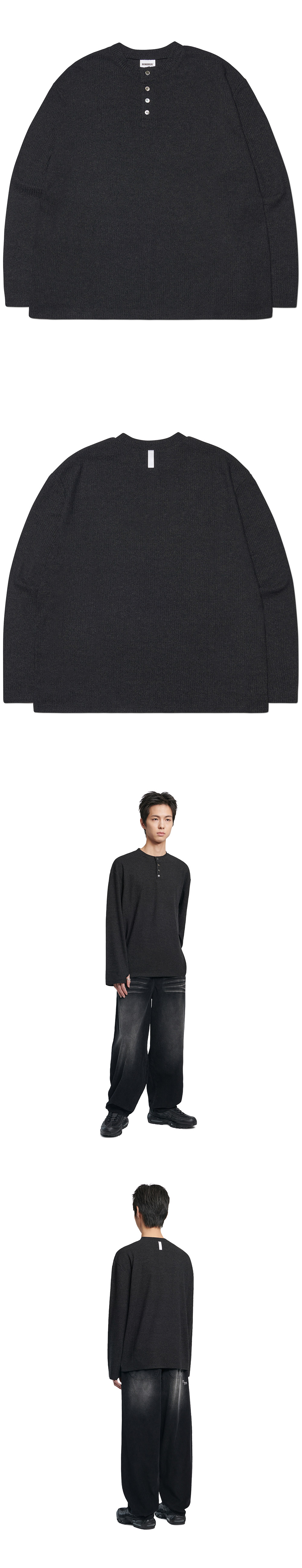 노매뉴얼 헨리넥 니트 롱 슬리브 블랙