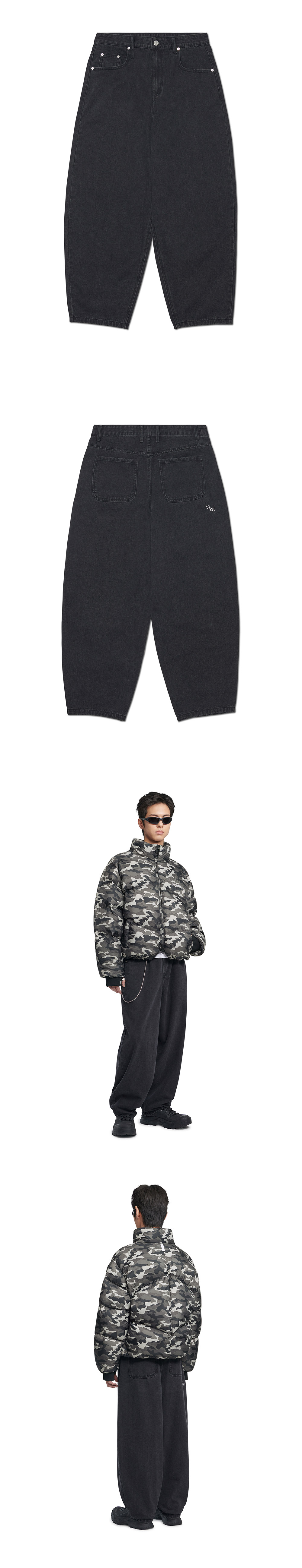 노매뉴얼 웨이브 커브드 데님 팬츠 블랙