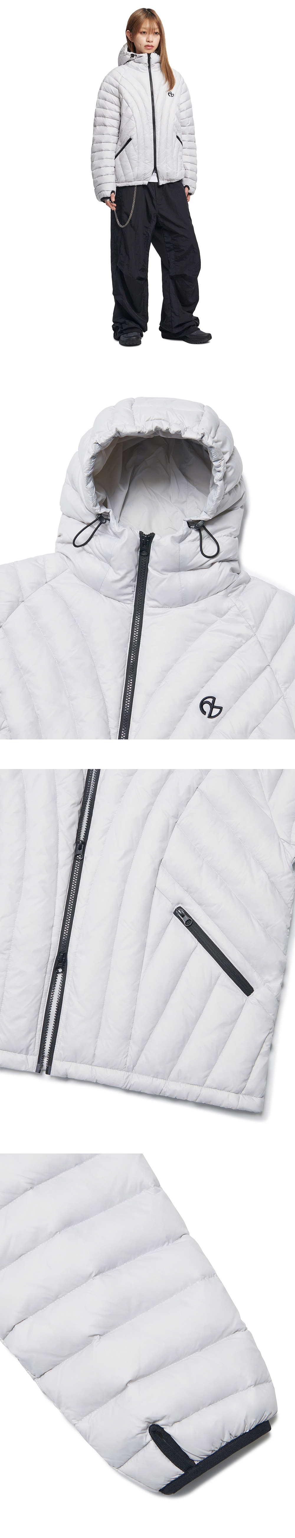 MODEL MAN : 180CM (L SIZE) WOMAN : 165CM (S SIZE) OUTSHELL : NYLON 100% LINING : NYLON 100% FILLING : RDS DUCK DOWN 75% RDS DUCK FEATHER 25% FILLING AMOUNT 230G 2WAY ZIPPER (YKK社) THUMB HOLE DETAIL WAIST STRING WATERPROOFING FOR DAILY USE * 제품 수령 직후에는 필파워가 약할 수 있습니다. 하루 정도 옷걸이에 걸어두시면 복원됩니다. * 두꺼운 폴리백 특성상 옷에 슬립제가 묻어나올 수 있습니다. 어두운 색 계열의 상품 구매시 보이는 슬립제는 불량의 사유가 아님을 알려드립니다.