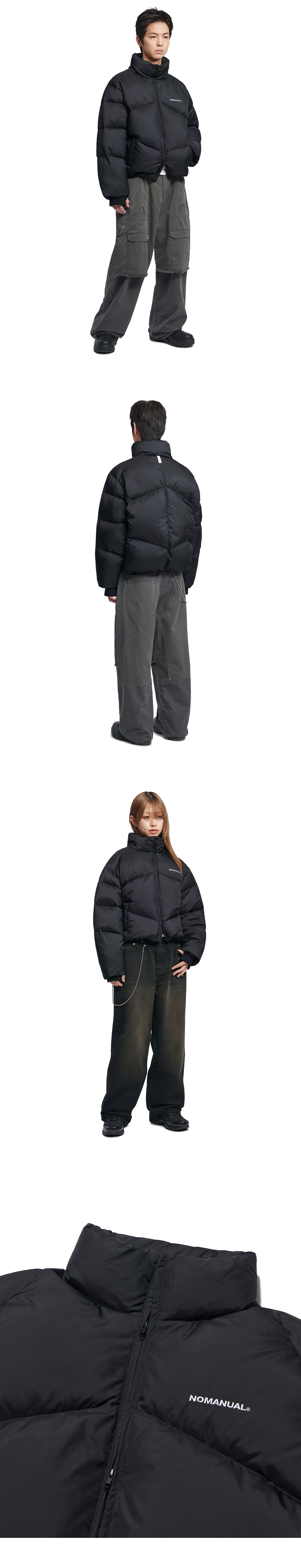 MODEL MAN : 180CM (L SIZE) WOMAN : 165CM (XS (WOMAN) SIZE) OUTSHELL : POLYESTER 100% LINING : NYLON 100% FILLING : RDS DUCK DOWN 80% RDS DUCK FEATHER 20% S M L XL SIZE > FILLING AMOUNT 380G XS (WOMAN) SIZE > FILLING AMOUNT 240G 2WAY ZIPPER THUMB HOLE DETAIL WAIST STRING WATERPROOFING FOR DAILY USE * 제품 수령 직후에는 필파워가 약할 수 있습니다. 하루 정도 옷걸이에 걸어두시면 복원됩니다. * 두꺼운 폴리백 특성상 옷에 슬립제가 묻어나올 수 있습니다. 어두운 색 계열의 상품 구매시 보이는 슬립제는 불량의 사유가 아님을 알려드립니다.