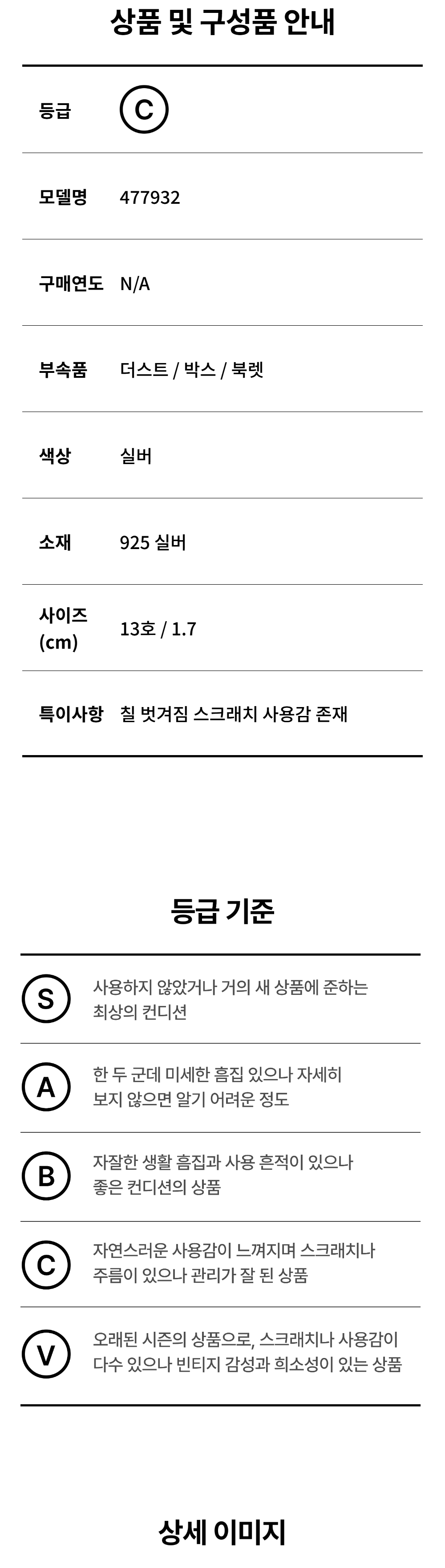 [C등급] 구찌 477932 고스트 링 실버 3.8mm 13