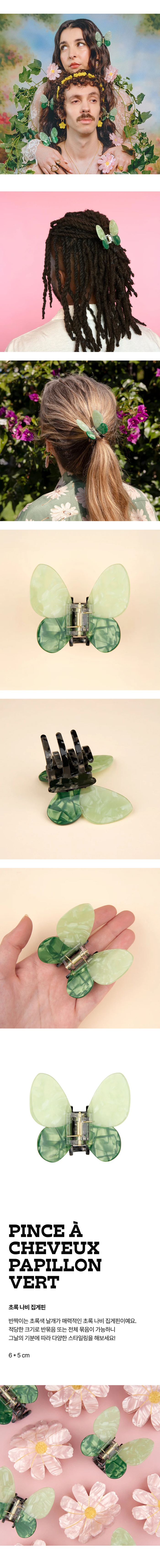 쿠쿠수제뜨 초록 나비 헤어집게핀