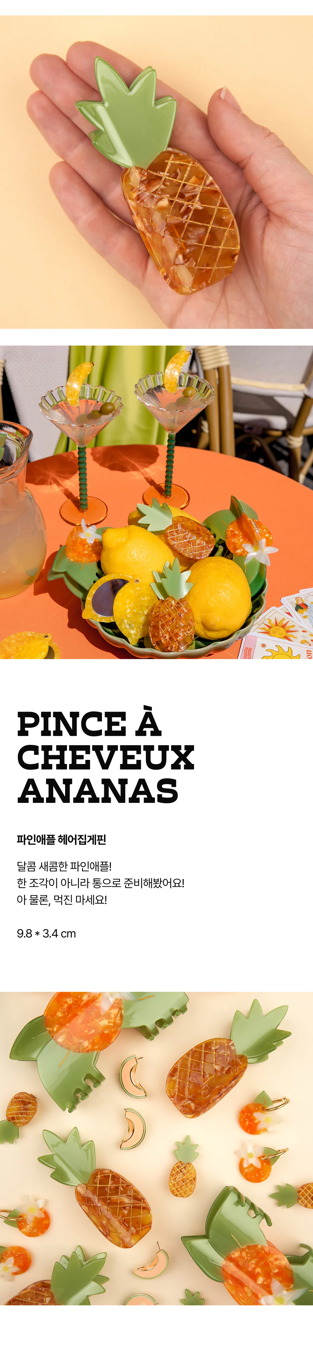 쿠쿠수제뜨 파인애플 헤어집게핀