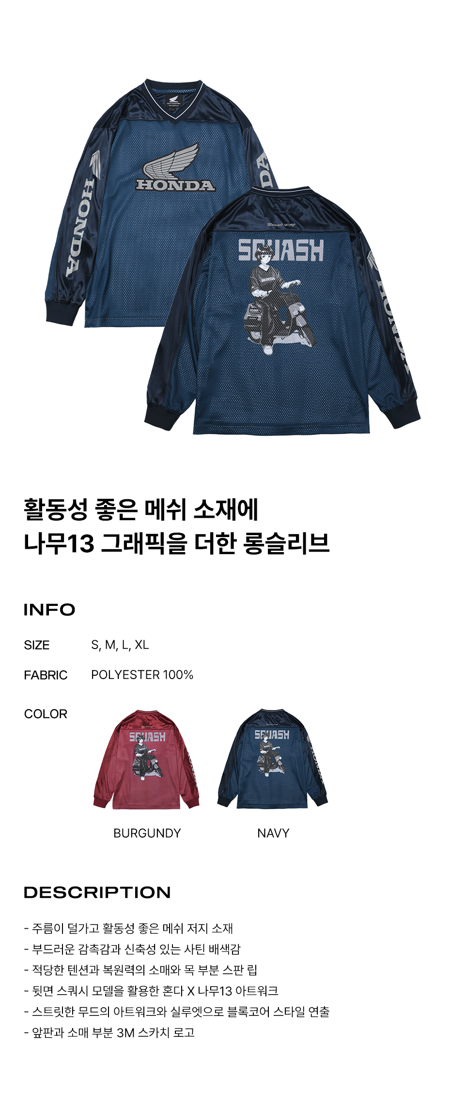 [KREAM 단독] 혼다 X 나무13 스쿼시 메쉬 롱 슬리브 네이비