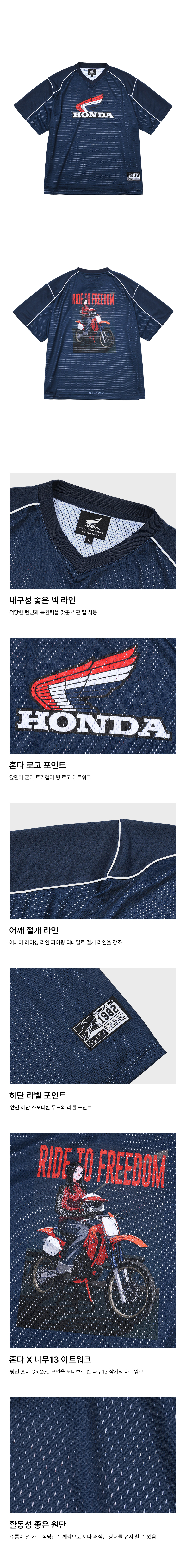 [KREAM 단독] 혼다 X 나무13 CR 250 박스 메쉬 숏 슬리브 네이비