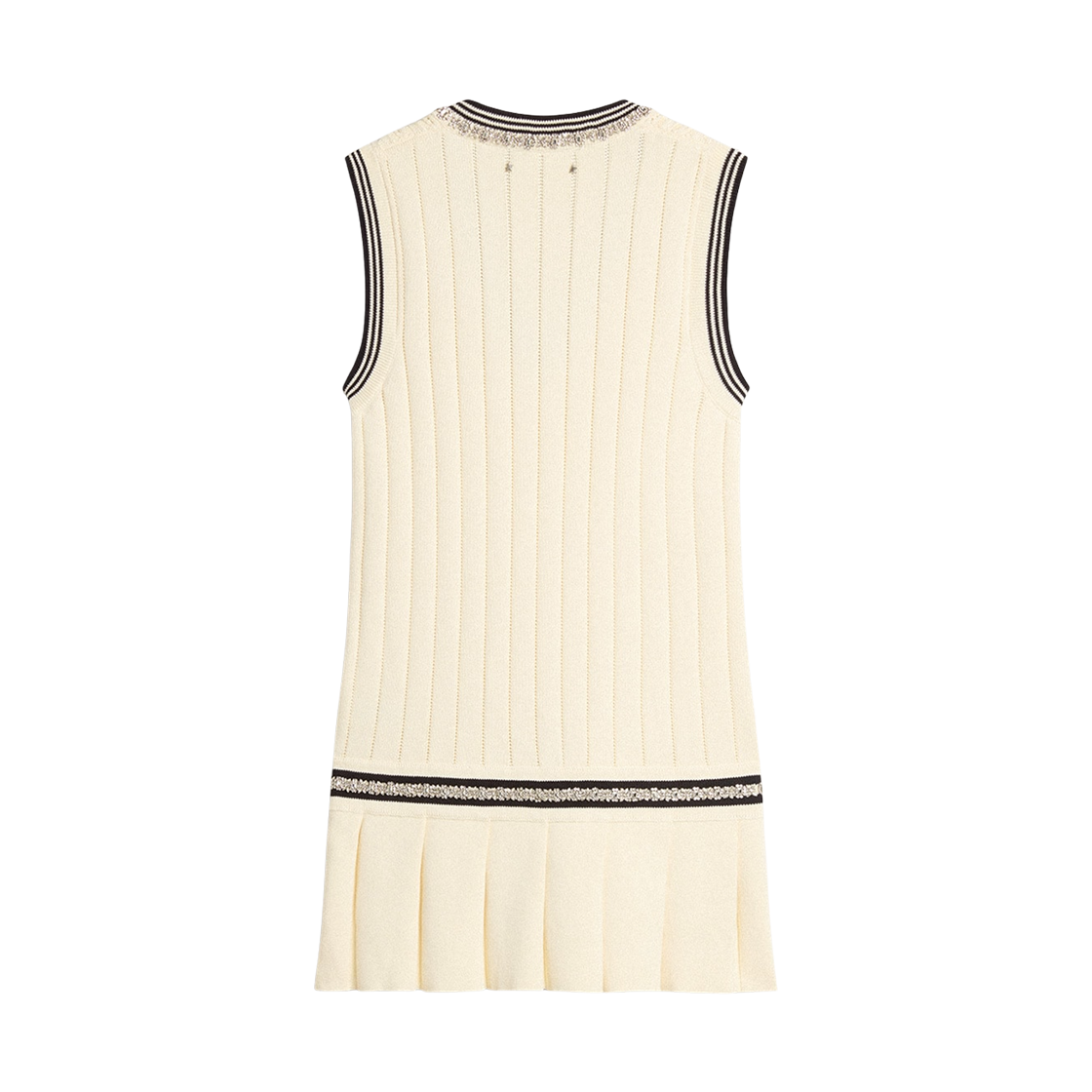(W) Golden Goose Cotton Vest Dress with Dark Blue Ribbing and Crystals Worn White