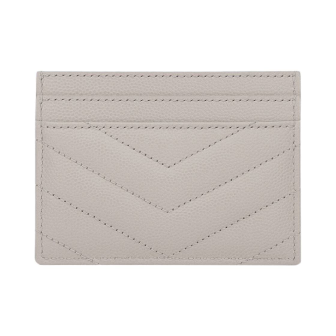 Saint Laurent Cassandre Matelasse Card Case in Grain De Poudre Embossed Leather Blanc Vintage