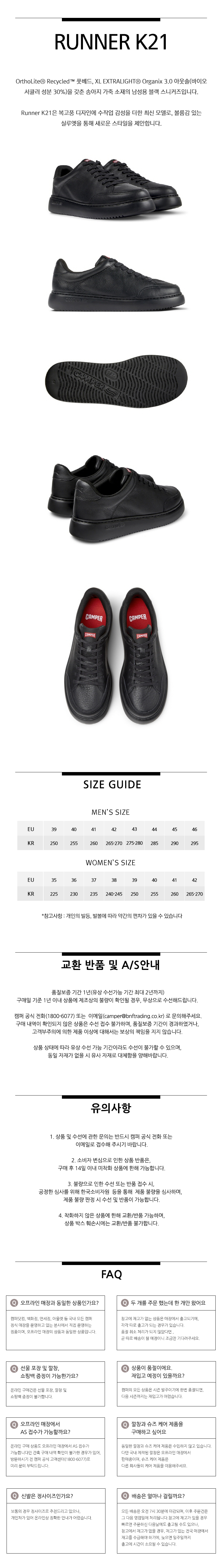 캠퍼 남성 러너 K21 스니커즈 블랙