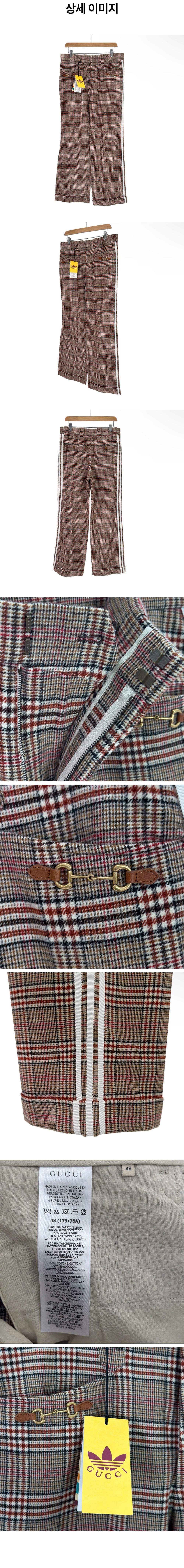 구찌 x 아디다스 남성 홀스빗 체크 삼선 울 팬츠