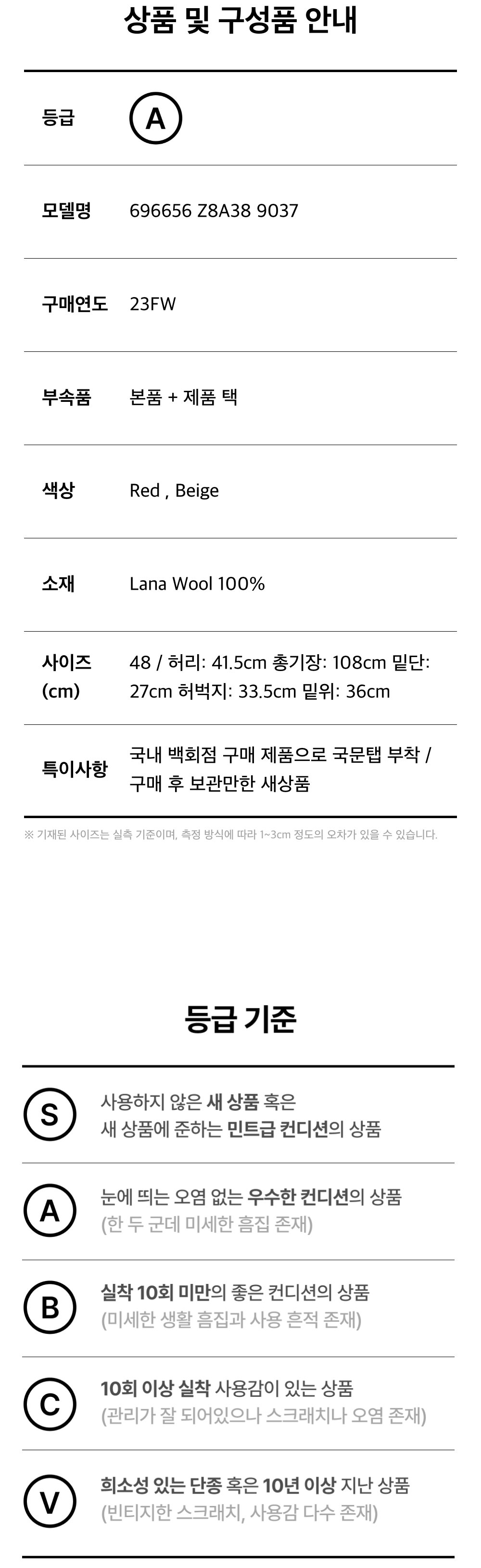 모든 상품(가죽, 의류, 잡화, 슈즈 등)은 사용자의 사용방법과 환경에 따라 변형, 변색이 될 수 있으니 반드시 취급 라벨에 표시된 관리 안내를 따르시길 권장 드립니다. 이는 정도의 차이가 있으며 과도한 체열과 땀, 습기, 빛, 마찰은 제품의 손상 및 변형을 일으킬 수 있으므로 주의하시길 바랍니다.