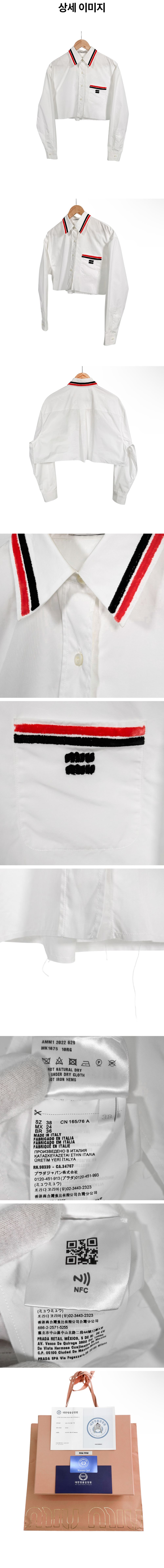 미우미우 여성 엣지 자수로고 크롭 포플린 셔츠