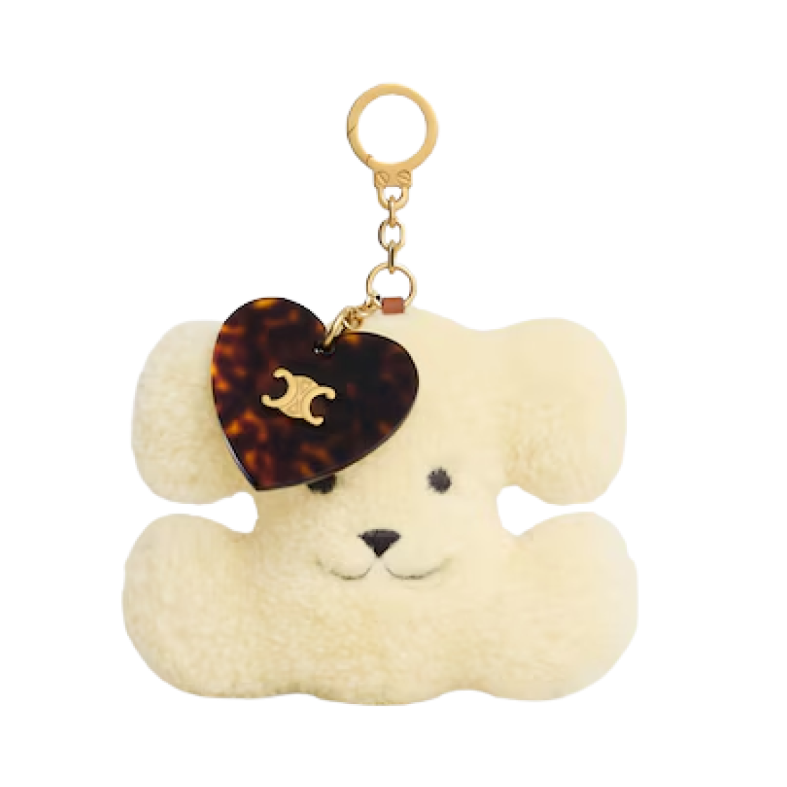 Celine Triomphe Heart Pom-Pom Charm in Shearling and Acetate Natural Tan