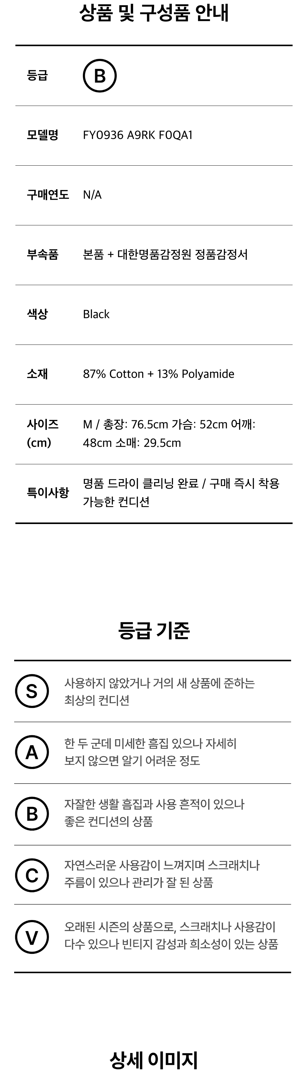펜디 칼리그래피 FF 로고 테리 코튼 반팔 티셔츠 블랙