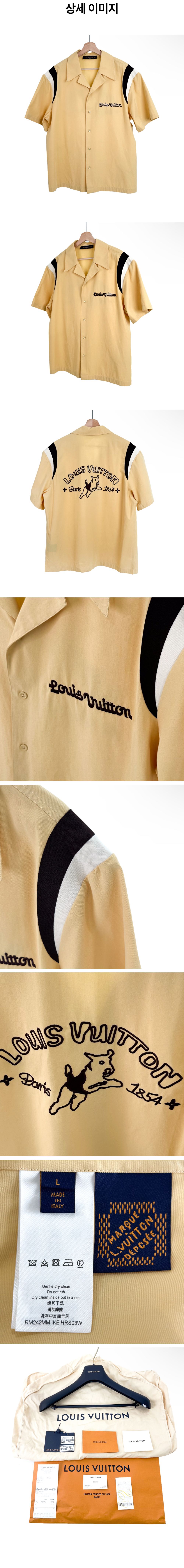 루이비통 남성 24ss 강아지 자수 반팔 코튼 볼링 셔츠
