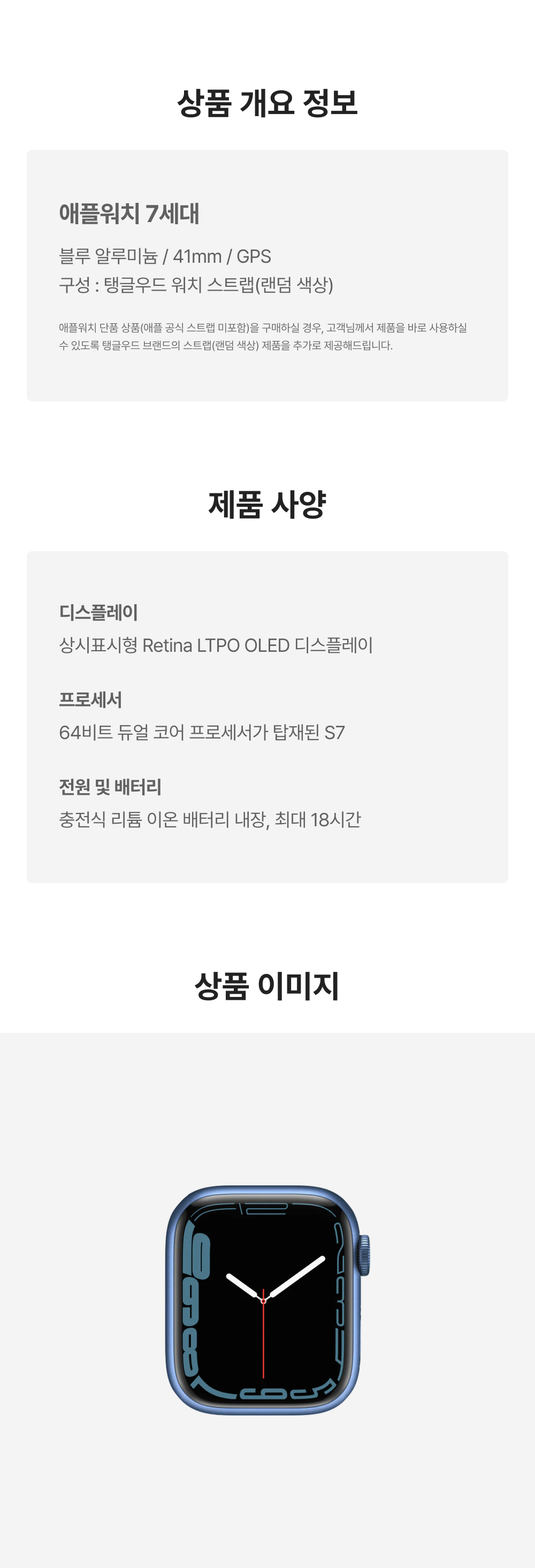 [B등급] 리퍼비시 애플워치 7 41mm GPS 블루 알루미늄 케이스