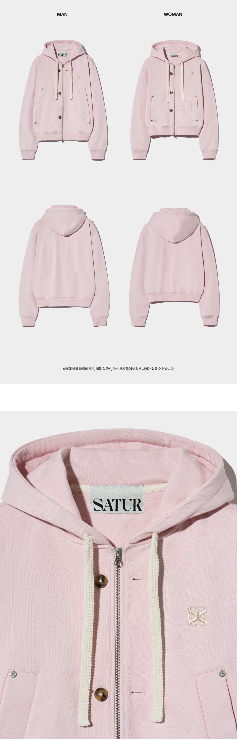 SATUR Teo Cotton All Day Hood Zip Up Pale Pink