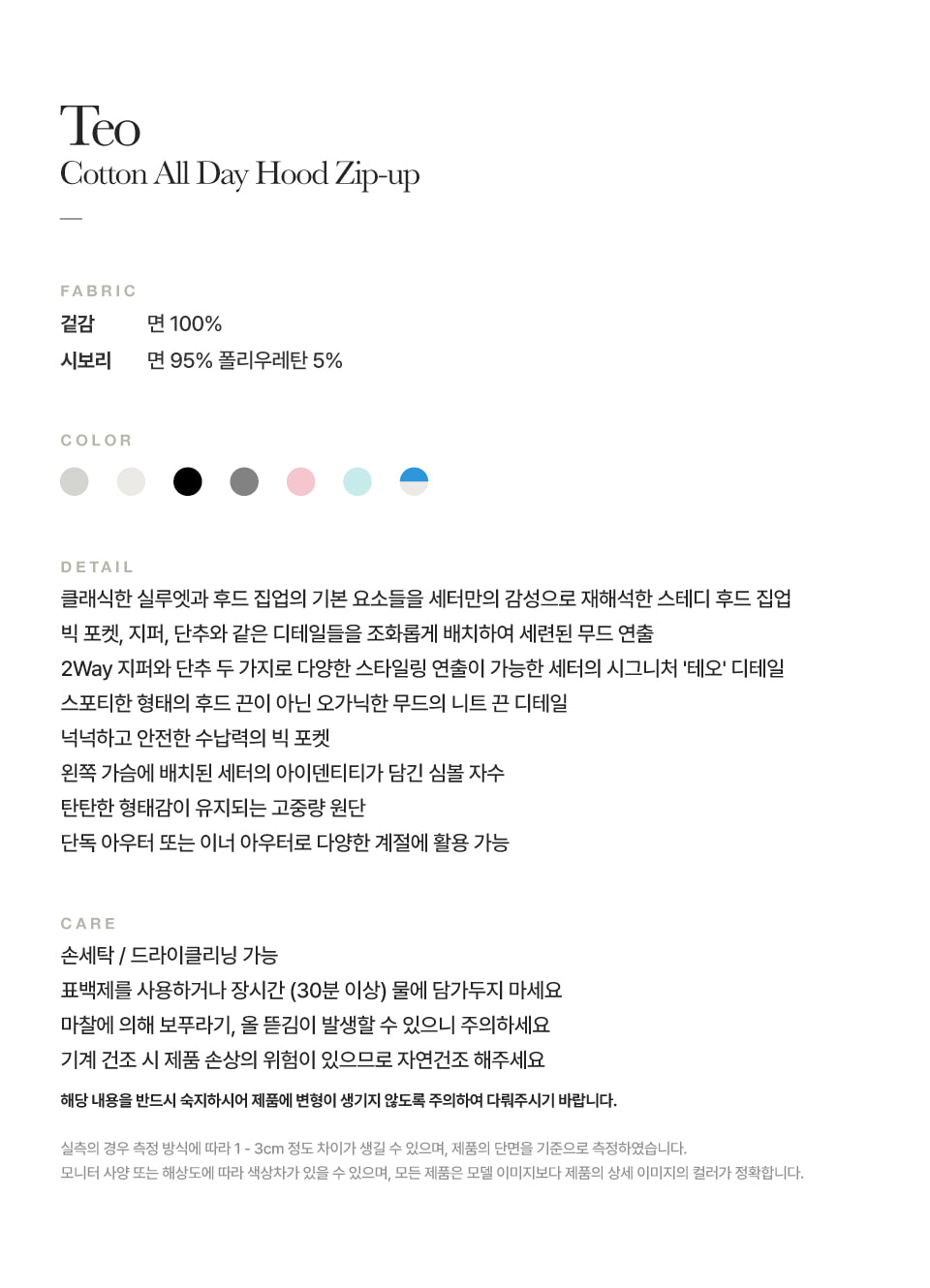 세터 테오 코튼 올 데이 후드 집업 아이스 블루