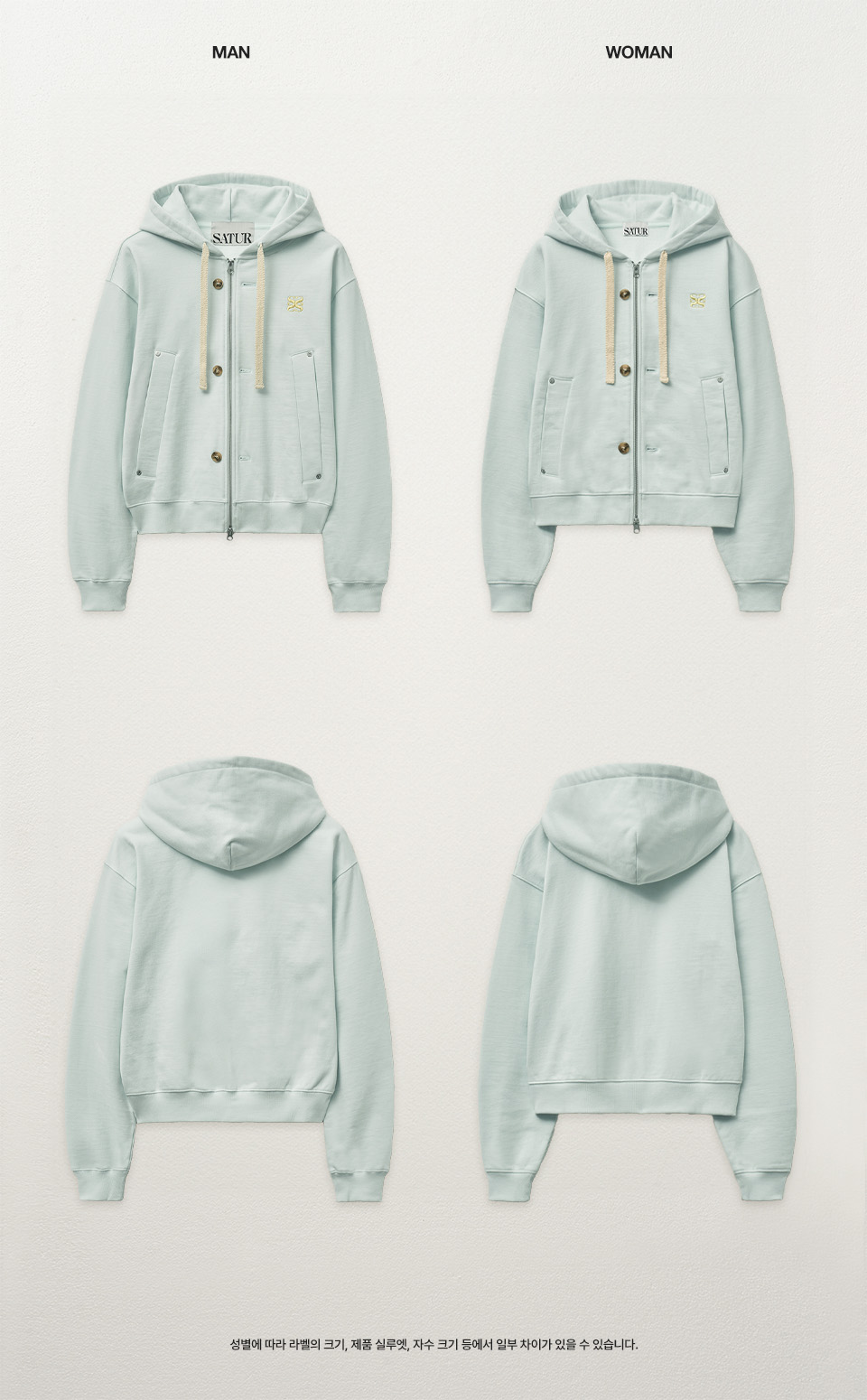 SATUR Teo Cotton All Day Hood Zip up Ice Blue