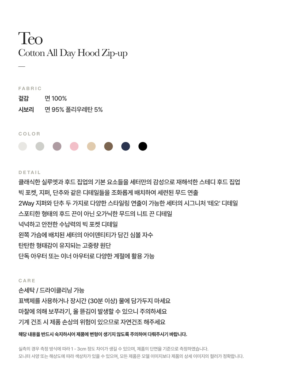 측정 방법에 따라 사이즈에 일부 오차가 있을 수 있습니다.
