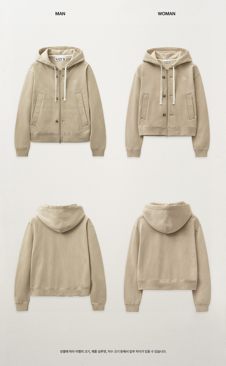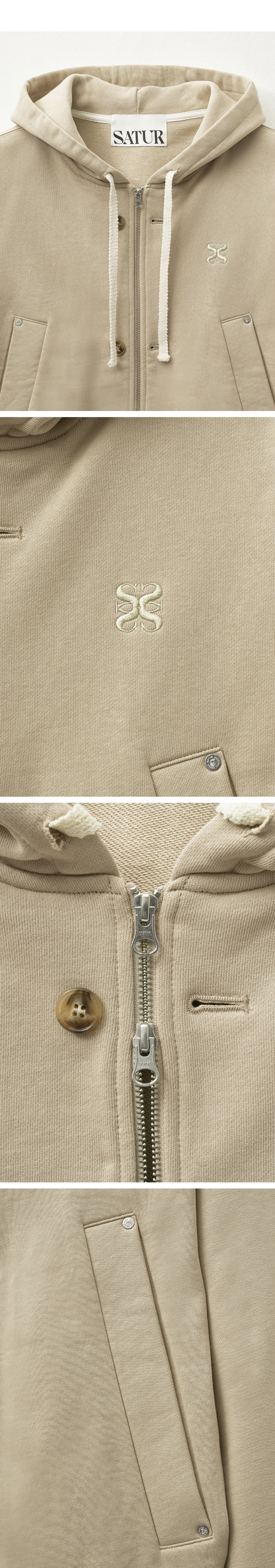 SATUR Teo Cotton All Day Hood Zip up Beige