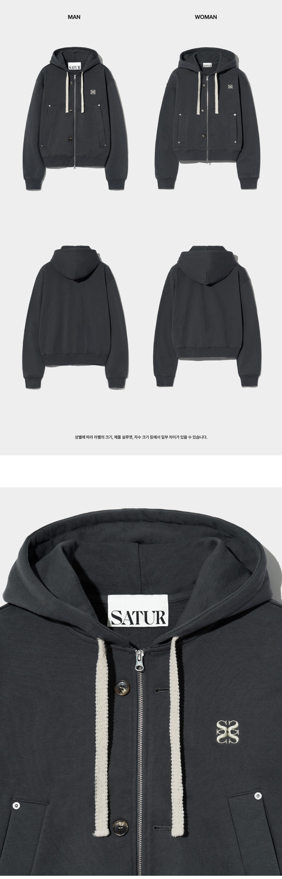 SATUR Teo Cotton All Day Hood Zip Up Classic Charcoal