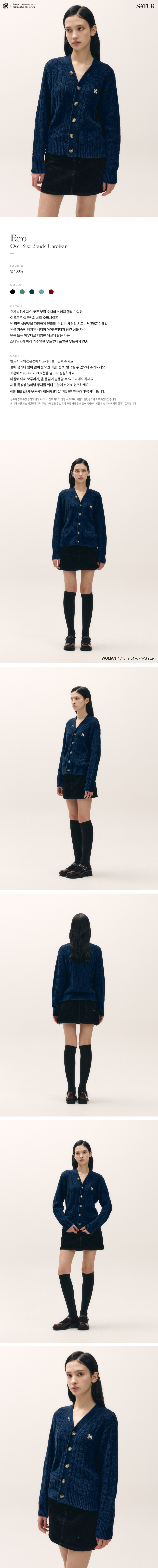 [사은품 증정] SATUR Faro Over Size Boucle Cardigan Navy Peony
