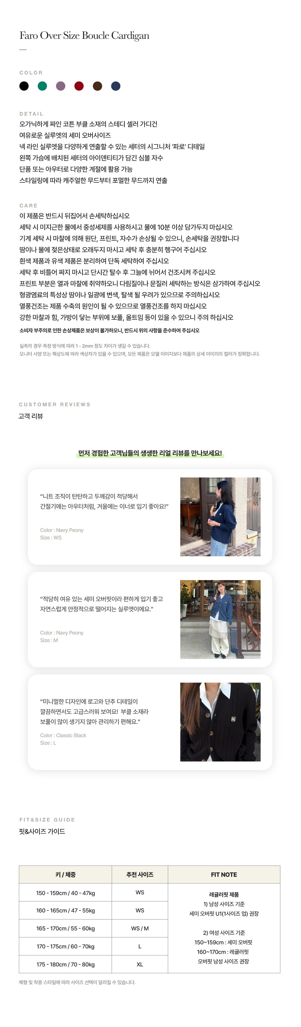 세터 파로 오버 사이즈 부클 가디건 클래식 블랙