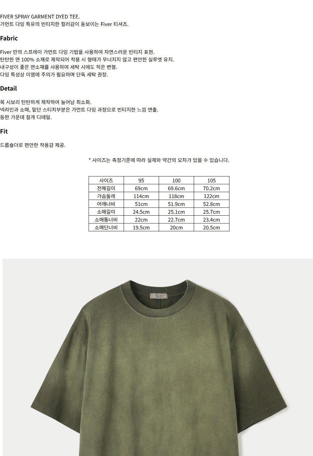 시리즈 스프레이 가먼트 다이드 티셔츠 그린