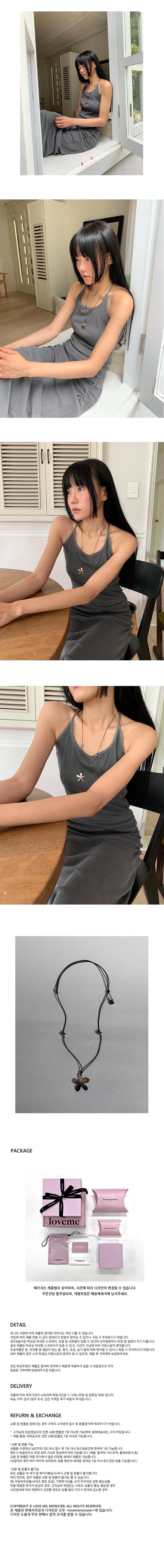 플라워 모티브의 자개 참과 코팅된 끈으로 제작한 목걸이입니다. 끈을 조이거나 늘려서 쉽게 착용할 수 있으며 짧은 기장부터 롱 목걸이로 다양한 스타일링이 가능합니다. 화이트에서 실버, 브라운의 오묘한 컬러를 지닌 플라워 팬던트는 핫써머 무드로 심플한 룩을 완성시켜줍니다. *자개의 소재 특성상 크기 및 컬러가 일정하지 않으며, 플라워 참의 색상이 사진과 다를 수 있습니다. (이는 상품의 불량 사유가 될 수 없으므로 구매시 유의 바랍니다. ) *스트랩 목걸이 특성상 물을 가급적 피해 사용하여 주시기 바라며 시간이 지남에따라 자연스럽게 노후됩니다.