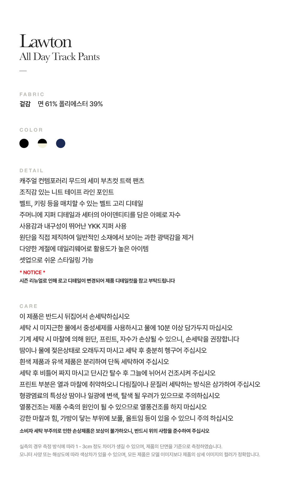 측정 방법에 따라 사이즈에 일부 오차가 있을 수 있습니다.