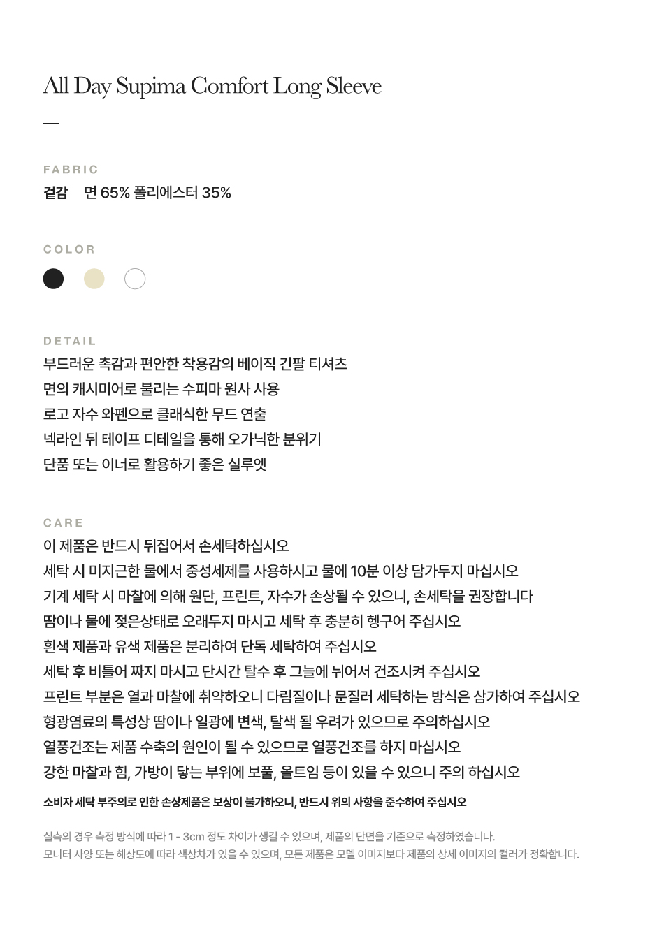 세터 올 데이 수피마 컴포트 롱 슬리브 3 컬러