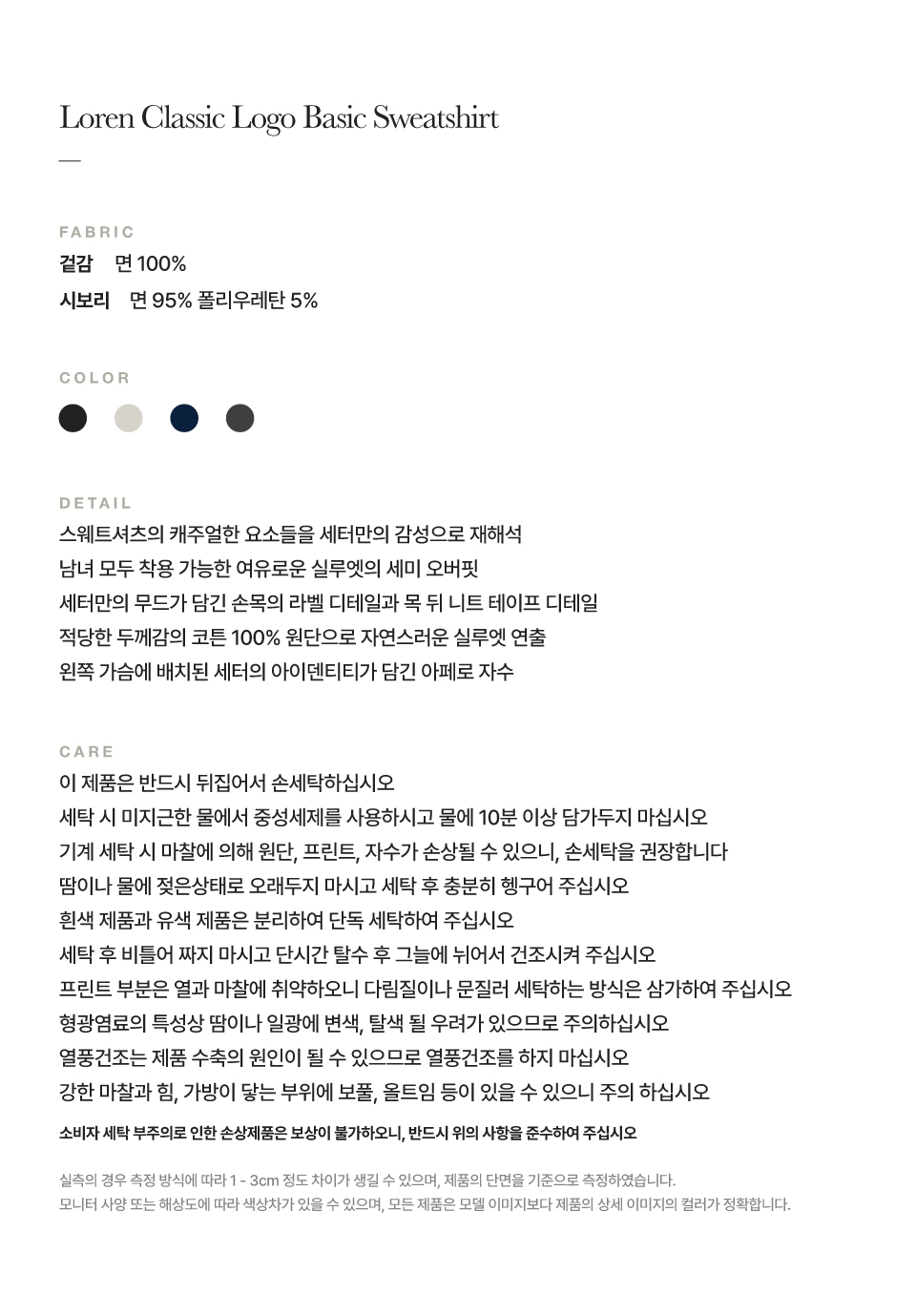 세터 로렌 스몰 로고 베이직 스웨트셔츠 네이비